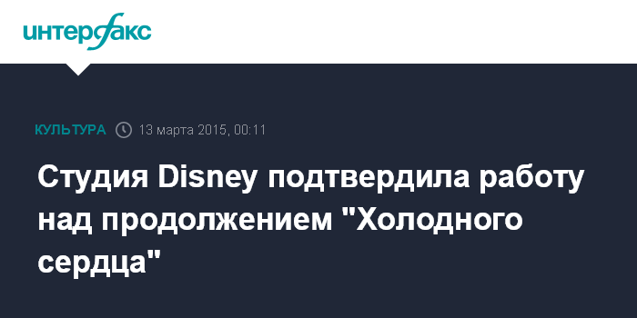 Москва. 13 марта. INTERFAX.RU - Студия Disney подтвердила начало работы над продолжением полнометражного мультфильма "Холодное сердце", сообщил телеканал CNN.
