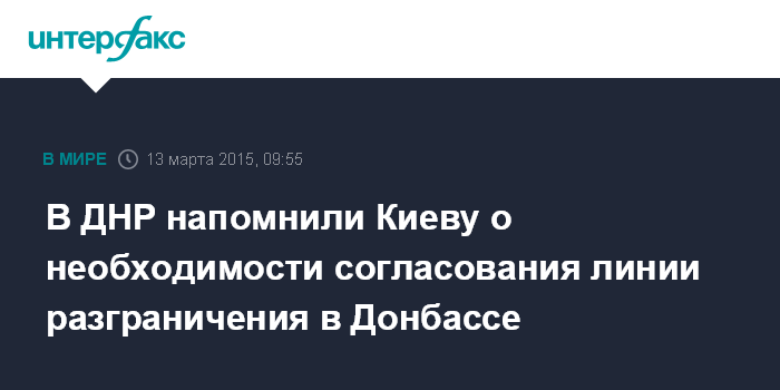 Москва. 13 марта. INTERFAX.RU - В самопровозглашенной Донецкой народной республике напоминают, что линия разграничения должна быть согласована обеими сторонами, а не утверждена Киевом в одностороннем порядке.