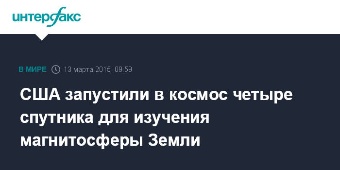 Москва. 13 марта. INTERFAX.RU - Специалисты НАСА объявили в пятницу, что успешно запустили в космос четыре научных спутника, которым предстоит собирать информацию о земной магнитосфере.