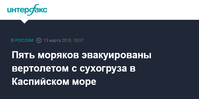 Пять моряков эвакуированы вертолетом с сухогруза в Каспийском море