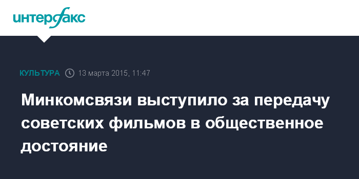 Москва. 13 марта. INTERFAX.RU - Минкомсвязи поддержало идею перевода советских фильмов в общественное достояние, заявил "Известиям" замминистра связи и массовых коммуникаций Алексей Волин.