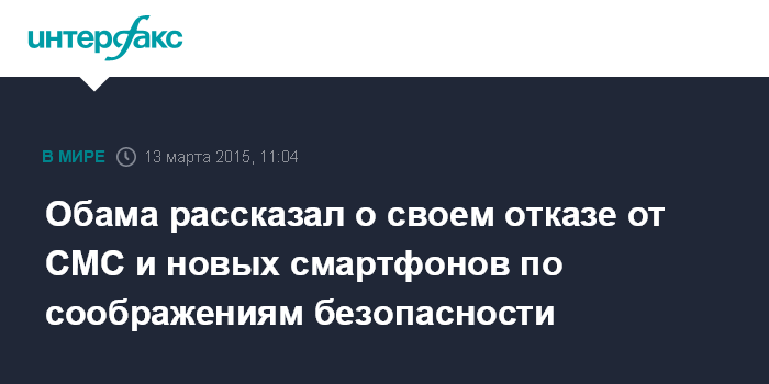 Москва. 13 марта. INTERFAX.RU - Президент США Барак Обама заявил, что не отправляет смс-сообщения из соображений безопасности, а также не пользуется телефонами с записывающими устройствами и редко заходит в твиттер.