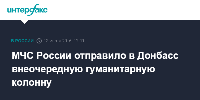 Москва. 13 марта. INTERFAX.RU - Внеочередная дополнительная колонна МЧС России отправилась в Донбасс, сообщил "Интерфаксу" в пятницу замначальника Национального центра управления в кризисных ситуациях МЧС России Олег Воронов.
