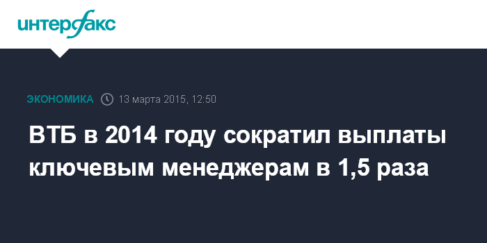 ВТБ в 2014 году сократил выплаты ключевым менеджерам в 1,5 раза