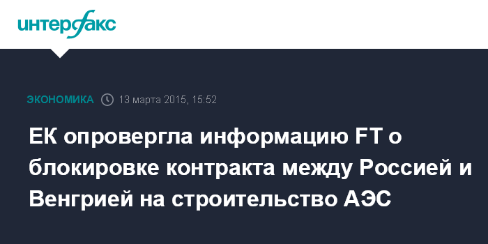 Ранее газета Financial Times сообщила со ссылкой на свои источники, что ЕК заблокировала контракт между Россией и Венгрией на строительство двух новых энергоблоков на АЭС "Пакш" общей стоимостью 12 млрд евро. Европейское агентство Евратом, пишет газета, отказалось одобрить планы Венгрии, предусматривающие импорт топлива для АЭС исключительно из России. Будапешт попытался обжаловать это решение в Еврокомиссии, но не получил поддержки.