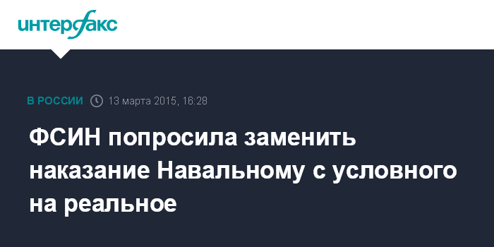 Москва. 13 марта. INTERFAX.RU - В Люблинском суде Москвы сообщили, что Федеральная служба исполнения наказания (ФСИН) просит заменить условное наказание оппозиционеру Алексею Навальному по делу "Кировлеса" на реальное - пять лет заключения.