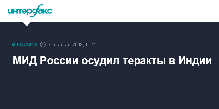 Москва.31 октября. INTERFAX.RU - В Москве решительно осуждают теракты, совершенные накануне в одном из индийских штатов, в результате которых погибли более 70 человек.