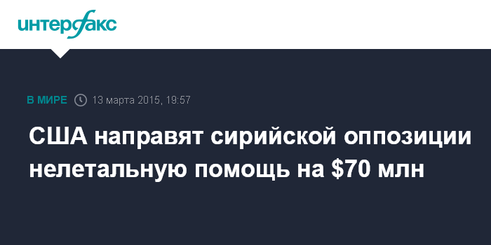Таким образом, всего с начала конфликта в Сирии помощь, оказанная сирийской оппозиции Соединенными Штатами, включая эти поставки, достигнет $400 млн.