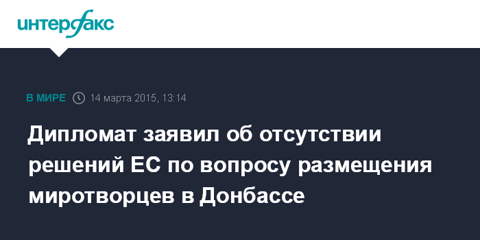 Дипломат заявил об отсутствии решений ЕС по вопросу размещения миротворцев в Донбассе
