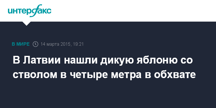 Москва. 14 марта. INTERFAX.RU - Активисты Латвийского центра петроглифов обнаружили в Скрундском крае самую большую в республике дикую яблоню - окружность ее ствола составляет 4 метра, сообщили BNS в Министерстве охраны среды и регионального развития.