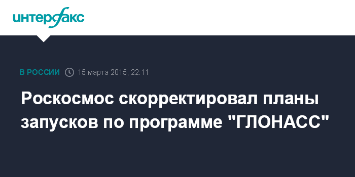 Москва. 15 марта. INTERFAX.RU - Роскосмос отказался от группового запуска трех спутников "Глонасс-М" для поддержания орбитальной группировки Глобальной навигационной системы, вместо этого в сентябре может состояться одиночный запуск навигационного спутника, сообщили "Интерфаксу" в воскресенье в космической отрасли.