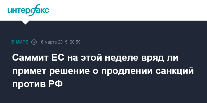 В то же время, как сообщает агентство Bloomberg, на ближайшем саммите 19-20 марта лидеры стран Евросоюза вряд ли примут решение о продлении санкций, которые истекают в июле.