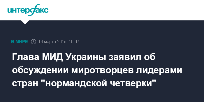 Москва. 16 марта. INTERFAX.RU - Глава украинского МИД Павел Климкин заявил, что президенты стран "нормандской четверки" на саммите в Минске 12 февраля обсуждали вопрос отправки миротворцев на Украину.