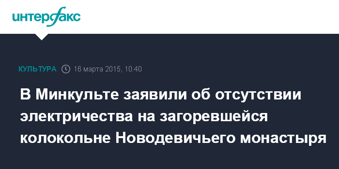 Ранее источник в правоохранительных органах заявил "Интерфаксу", что пожар на колокольне Новодевичьего монастыря мог возникнуть из-за короткого замыкания в результате работы тепловых пушек для просушки фасада в ходе проведения реставрационных работ.