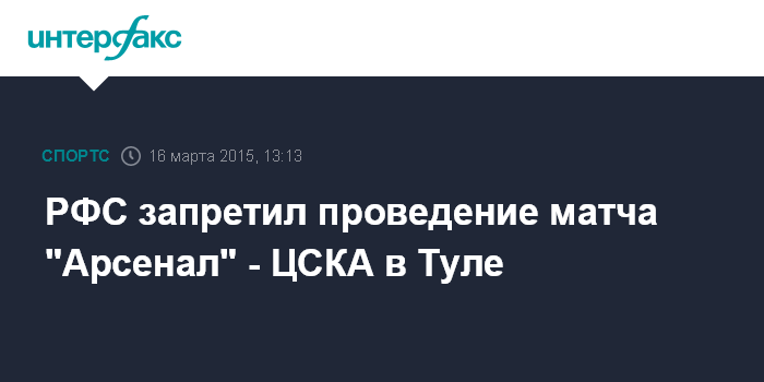 РФС запретил проведение матча "Арсенал" - ЦСКА в Туле