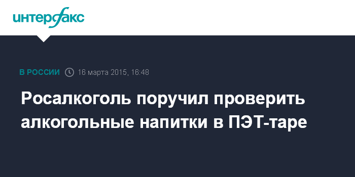 Москва. 16 марта. INTERFAX.RU - Росалкогольрегулирование поручило своим межрегиональным управлениям организовать вместе с территориальными органами Роспотребнадзора проверку алкогольной продукции в ПЭТ-таре.