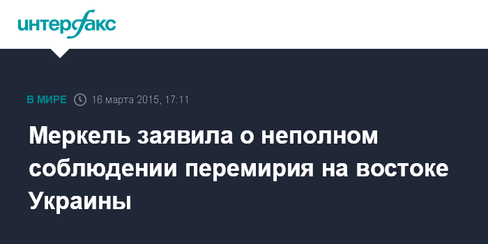 Москва. 16 марта. INTERFAX.RU - Канцлер Германии Ангела Меркель считает, что в Донбассе не удалось добиться полного прекращения огня.