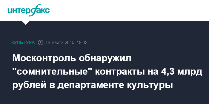 Москонтроль обнаружил "сомнительные" контракты на 4,3 млрд рублей в департаменте культуры