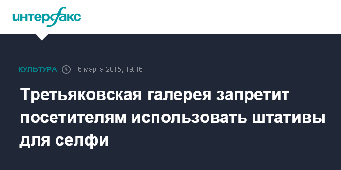 Москва. 16 марта. INTERFAX.RU - Государственная Третьяковская галерея запретит посетителям использовать штативы для съемки селфи, сообщает "М24".