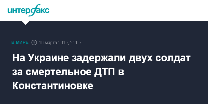 Москва. 16 марта. INTERFAX.RU - Двое украинских военнослужащих, виновных в совершении ДТП в Константиновке Донецкой области, в результате которого погиб ребенок, задержаны.