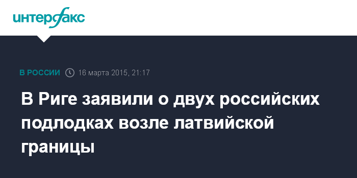 Москва. 16 марта. INTERFAX.RU - В понедельник вблизи латвийской эксклюзивной экономической зоны были замечены две российских подводных лодки класса "Кило", а также гидрографическое судно, сообщают Национальные вооружённые силы Латвии в своем микроблоге в твиттере