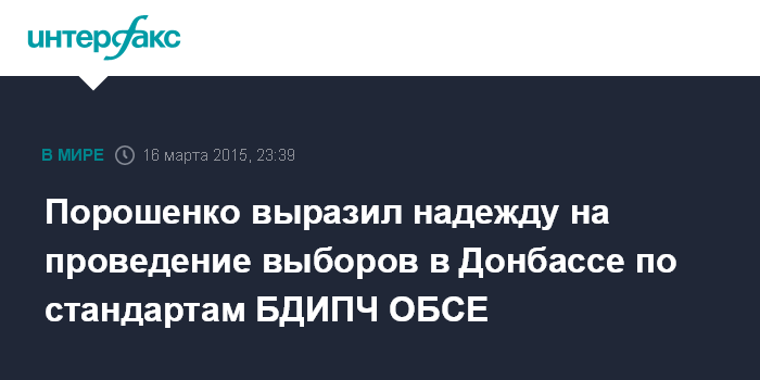 Москва. 16 марта. INTERFAX.RU - Президент Украины Петр Порошенко надеется, что местные выборы в Донбассе пройдут в соответствии с международными нормами и стандартами.