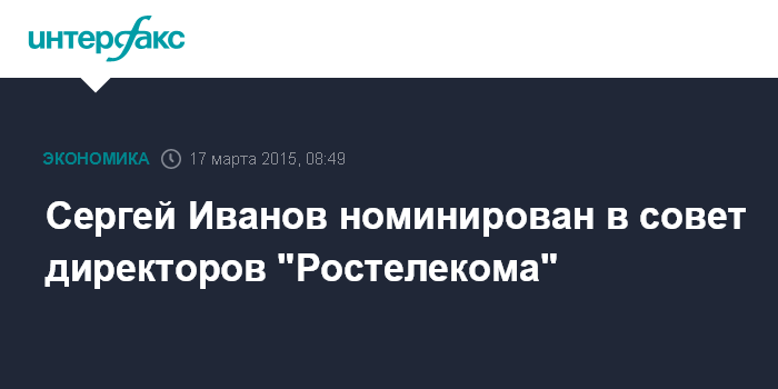 Сергей Иванов номинирован в совет директоров "Ростелекома"