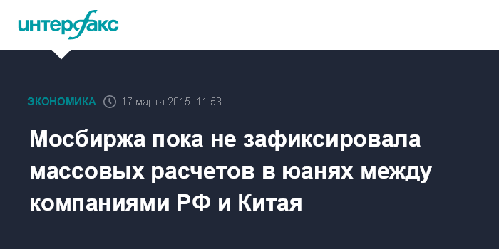 Мосбиржа пока не зафиксировала массовых расчетов в юанях между компаниями РФ и Китая