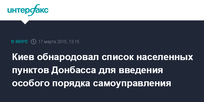 Киев обнародовал список населенных пунктов Донбасса для введения особого порядка самоуправления