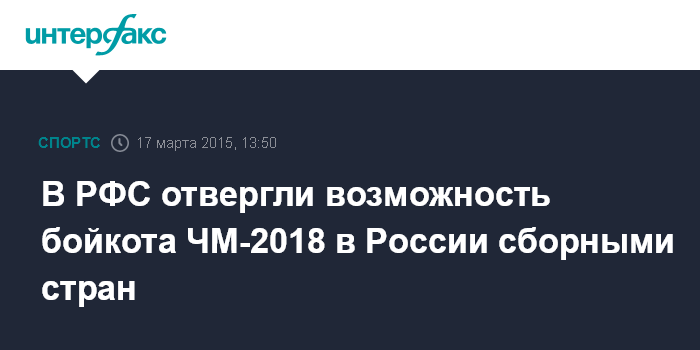 Москва. 17 марта. INTERFAX.RU - Генеральный секретарь Российского футбольного союза (РФС) Анатолий Воробьев выразил уверенность в том, что чемпионат мира 2018 в России не будет бойкотирован национальными командами.