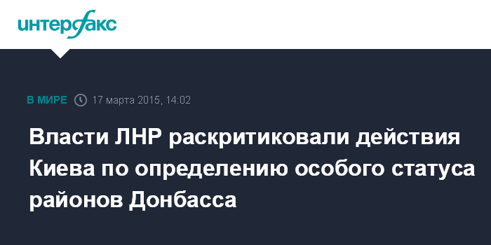 Власти ЛНР раскритиковали действия Киева по определению особого статуса районов Донбасса