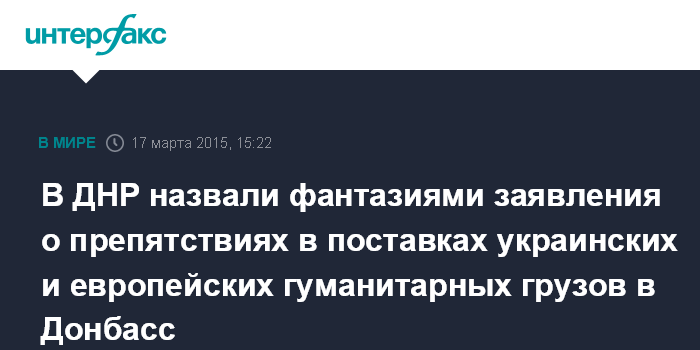 В ДНР назвали фантазиями заявления о препятствиях в поставках украинских и европейских гуманитарных грузов в Донбасс