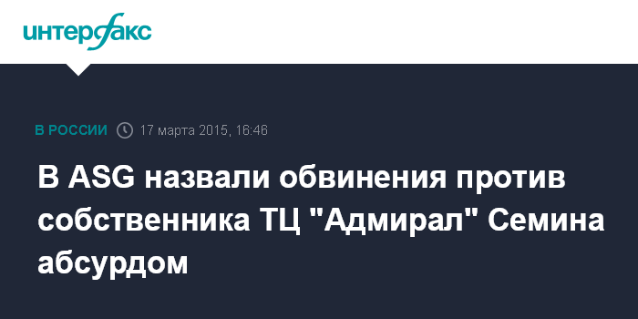 В ASG назвали обвинения против собственника ТЦ "Адмирал" Семина абсурдом