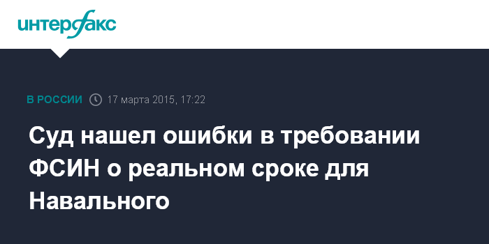 Москва. 17 марта. INTERFAX.RU - Люблинский суд Москвы вернул ФСИН представление об изменении оппозиционеру Алексею Навальному условного срока на реальный по делу "Кировлеса".