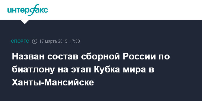 Москва. 17 марта. INTERFAX.RU - Союз биатлонистов России (СБР) опубликовал состав сборной РФ на заключительный этап Кубка мира, который пройдет в Ханты-Мансийске.