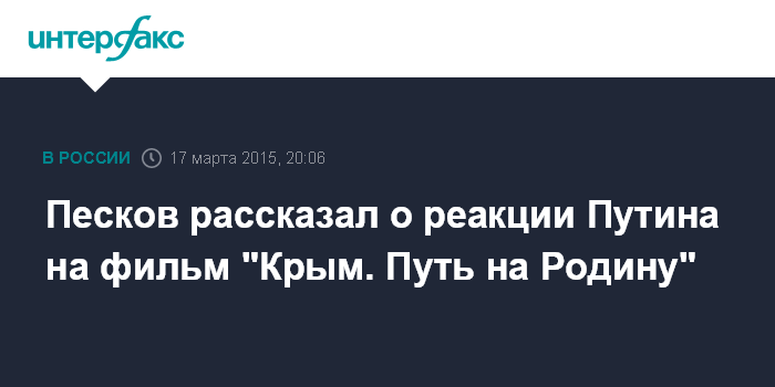 Москва. 17 марта. INTERFAX.RU - Президент РФ Владимир Путин назвал "хорошим кино" фильм "Крым. Путь на Родину", который был показан в минувшие выходные.