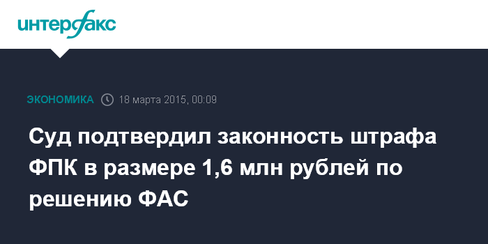 Суд подтвердил законность штрафа ФПК в размере 1,6 млн рублей по решению ФАС