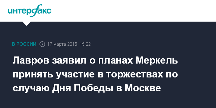 "Особое значение для срыва антироссийском кампании имеет согласие канцлера Германии Ангелы Меркель прибыть в Москву. Конкретные параметры ее участия в этих мероприятиях сейчас уточняются", - сказал глава МИД Сергей Лавров на заседании оргкомитета "Победа".