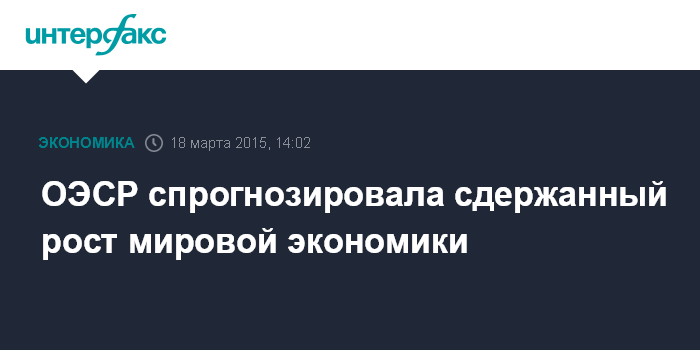Москва. 18 марта. INTERFAX.RU – Низкие цены на нефть и ослабление денежно-кредитной политики (ДКП) поддерживают экономический рост в крупнейших странах мира, однако в краткосрочной перспективе темпы повышения останутся сдержанными (modest), сообщается в отчете Организации экономического сотрудничества и развития (ОЭСР).