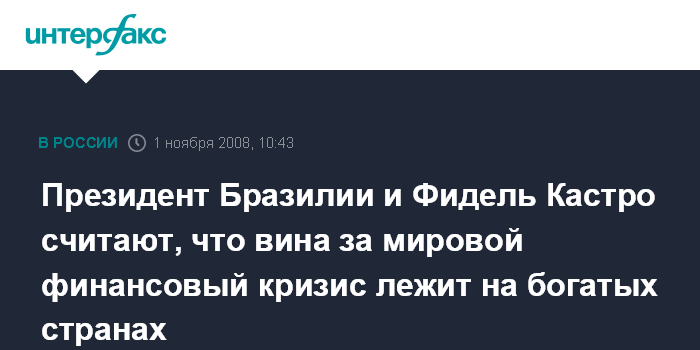 Президент Бразилии и Фидель Кастро считают, что вина за мировой финансовый кризис лежит на богатых странах