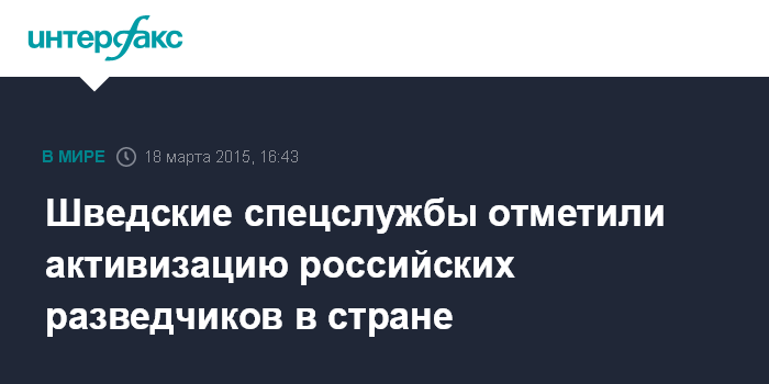 Москва. 18 марта. INTERFAX.RU - Сотрудники российской разведки крайне активно занимаются сбором информации на территории Швеции, заявили в шведской службе безопасности SAPO.