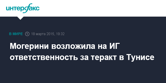 Москва. 18 марта. INTERFAX.RU - Ответственность за нападение, совершенное на музей в Тунисе, лежит на радикальной группировке "Исламское государство" (ИГ), говорится в заявлении главы европейской дипломатии Федерики Могерини.