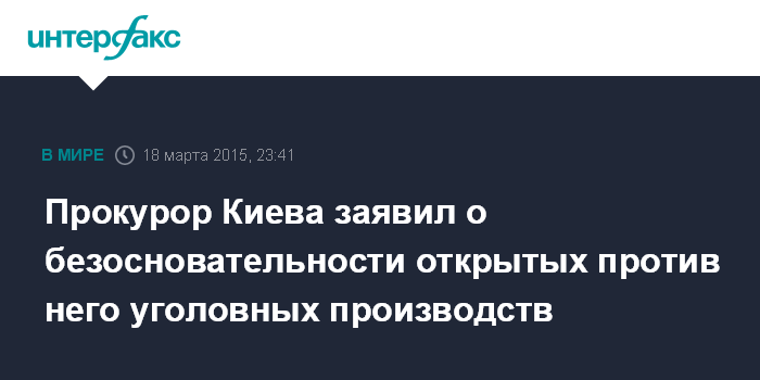 Москва. 18 марта. INTERFAX.RU - Прокурор Киева Сергей Юлдашев недоумевает, почему уголовное производство в отношении него по заявлению народного депутата Виталия Куприя открыто Главным следственным управлением Генпрокуратуры в то время, когда генеральный прокурор не находится в Украине и не закончена служебная проверка в отношении него Управлением внутренней безопасности Генпрокуратуры.