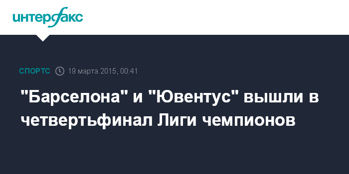 Москва. 19 марта. INTERFAX.RU - Испанская "Барселона" и итальянский "Ювентус" завоевали путевки в 1/4 финала Лиги чемпионов УЕФА.