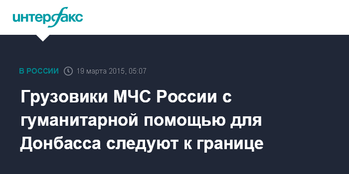 Москва. 19 марта. INTERFAX.RU - Автоколонна МЧС России с гуманитарной помощью, в состав которой включены и автомобили Красного Креста, отправилась в Донбасс, сообщили в Национальном центре управления в кризисных ситуациях (НЦУКС) МЧС.