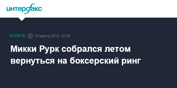 Москва. 19 марта. INTERFAX.RU - Американский актер Микки Рурк намерен этим летом вернуться на профессиональный боксерский ринг, сообщает World Boxing News.