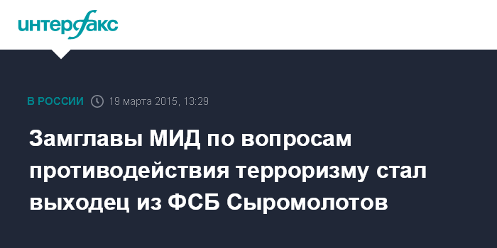 Замглавы МИД по вопросам противодействия терроризму стал выходец из ФСБ Сыромолотов
