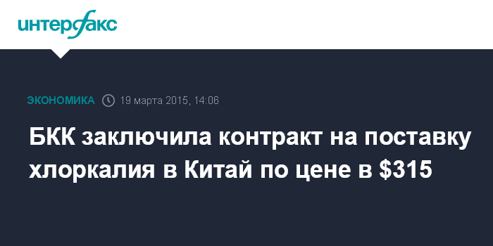 Москва. 19 марта. INTERFAX.RU – "Белорусская калийная компания" (БКК, трейдер "Беларуськалия") заключила контракт на поставку хлоркалия в Китай на первое полугодие по $315 за тонну, сообщили "Интерфаксу" источники на рынке. Эта цена выше цены прошлого года на $10 за тонну.