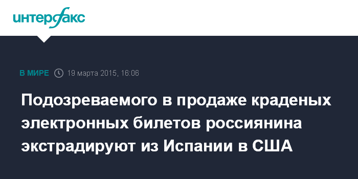 Подозреваемого в продаже краденых электронных билетов россиянина экстрадируют из Испании в США