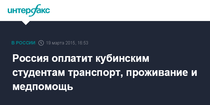 Москва. 19 марта. INTERFAX.RU - Для студентов из Кубы российская сторона будет компенсировать расходы за проезд, проживание и медицинскую страховку, им также будет выплачиваться повышенная стипендия, сообщил журналистам глава комитета по международным делам Совета Федерации Константин Косачев.